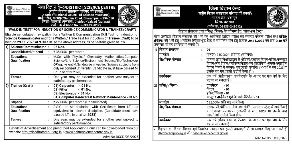 विज्ञापन संख्या DSCD/02/2025 आवेदन पत्र डाउनलोड करने के लिए यहां क्लिक करें।विज्ञापन विवरण डाउनलोड करने के लिए यहां क्लिक करें।